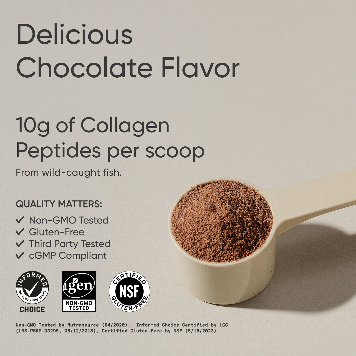 - QUALITY ASSURED: We hold our supplements to a higher standard. Our marine collagen powder supplement is IGEN Non-GMO verified, NSF Certified gluten-free, and Informed Choice tested for banned and contaminated substances - Note: Product sold by weight, not by volume